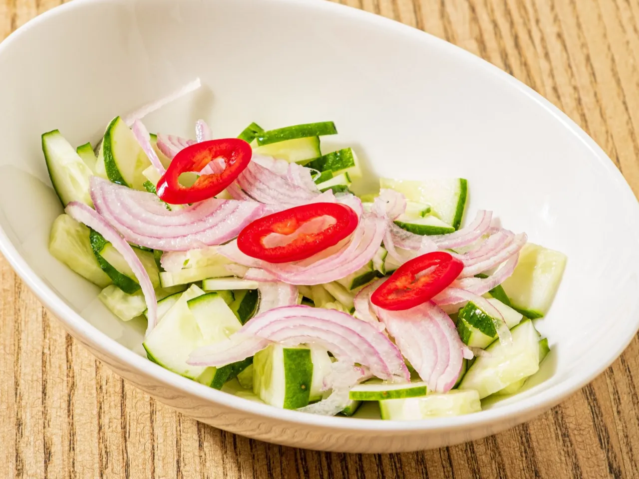 - Surówka z ogórków i cebuli – szybka w przygotowaniu, lekka i świeża.