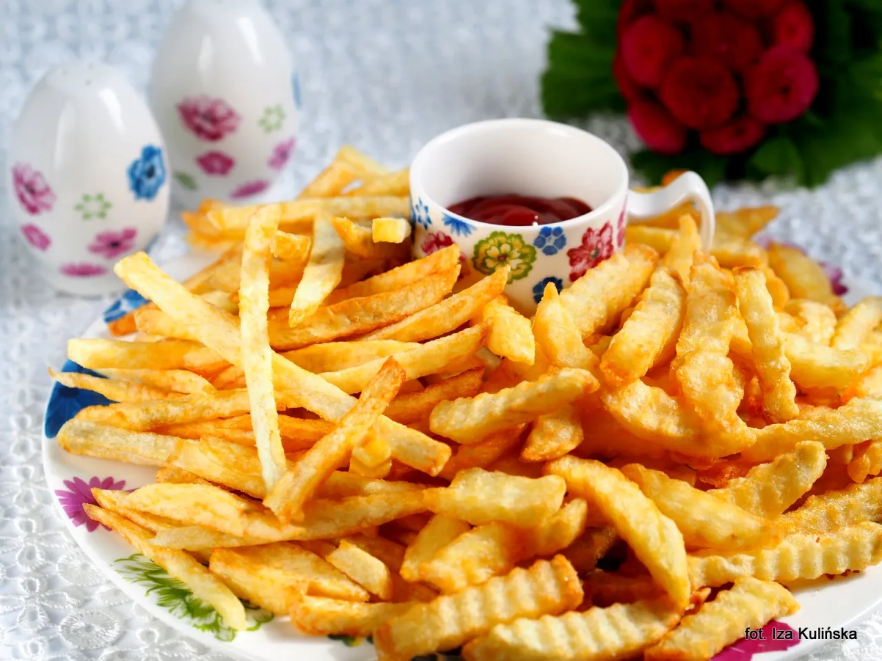 - Namaczanie frytek w lodowatej wodzie przez 30 minut poprawia ich chrupkość.