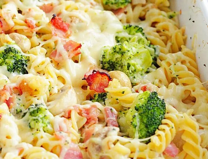 Szybki przepis na zapiekankę makaronową z boczkiem i brokułami